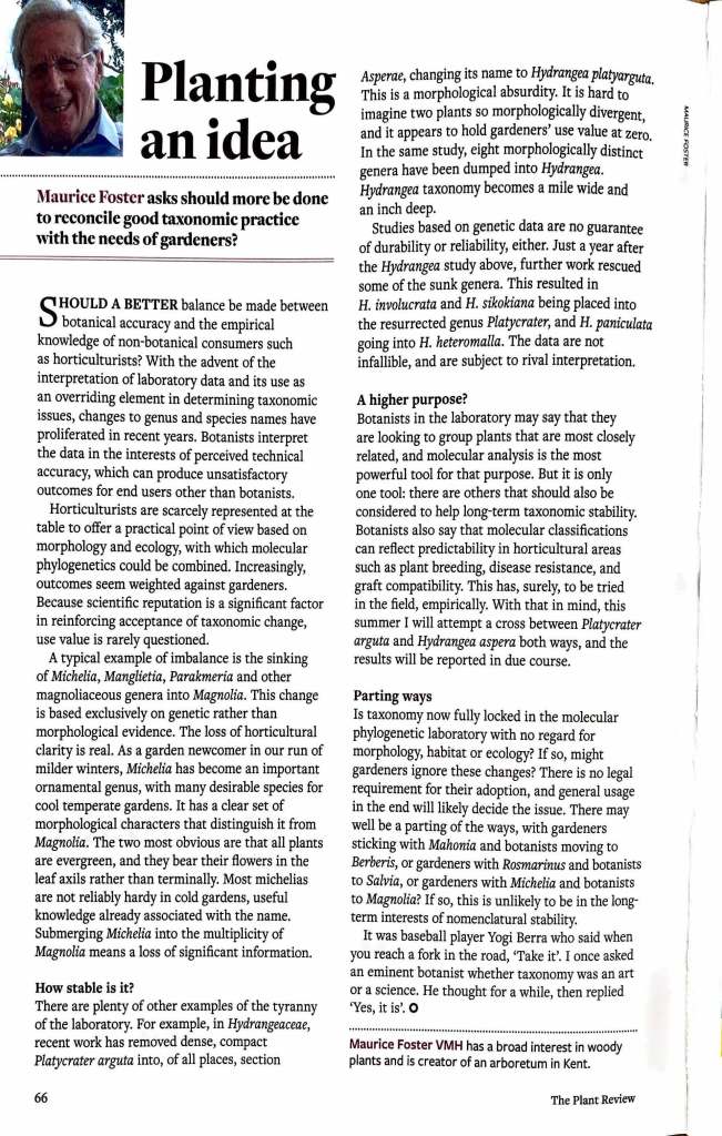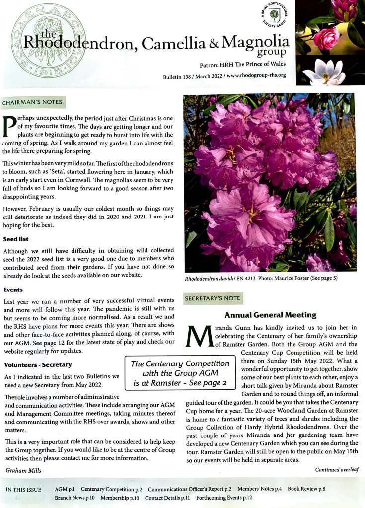 The Volunteer group (‘afternoon gardening teas’) has continued to build an enthusiastic local community that is having a significant long term impact on the garden. Maurice has published four articles so far in 2022, and has been asked to write a book on Hydrangeas by Crowood Press, which is well underway.